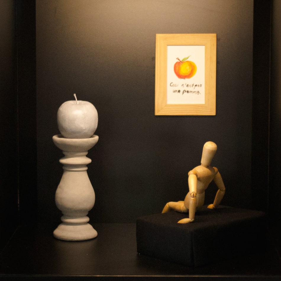 Sprache, Mythos, Religion, Kunst, Wissenschaft und Geschichte, je nach betrachteter Quelle auch Ethik, Recht und Technik, sind grundlegende, nicht aufeinander reduzierbare Weisen des Tuns und Erlebens: symbolische Formen. Die auf diesem Konzept beruhende Kulturphilosophie Ernst Cassirers gehört zu den wichtigsten philosophischen Großtheorien des zwanzigsten Jahrhunderts. Die Installation besteht aus verschiedenen symbolischen Formen zugeordneten Vitrinen, die alle an dasselbe stiftende »sinnliche Zeichen« anknüpfen: einen Apfel.